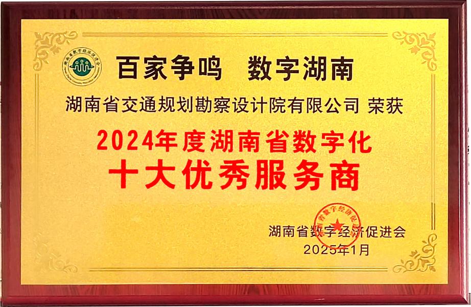 新質(zhì)交通,數(shù)智領(lǐng)航湖南交通設(shè)計(jì)院榮膺“湖南省數(shù)字化十大優(yōu)秀服務(wù)商”